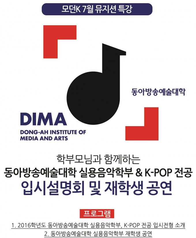 1. 2016학년도 동아방송예술대학 실용음악학부, K-POP 전공 입시전형 소개