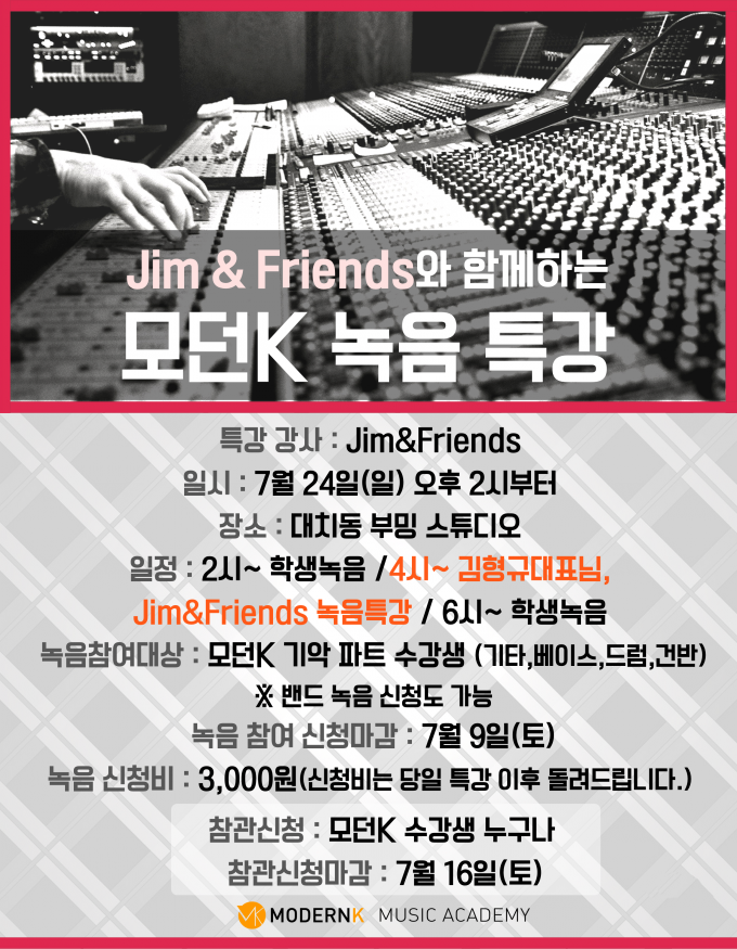 Jim & Friends와 함께 하는 모던K 녹음특강