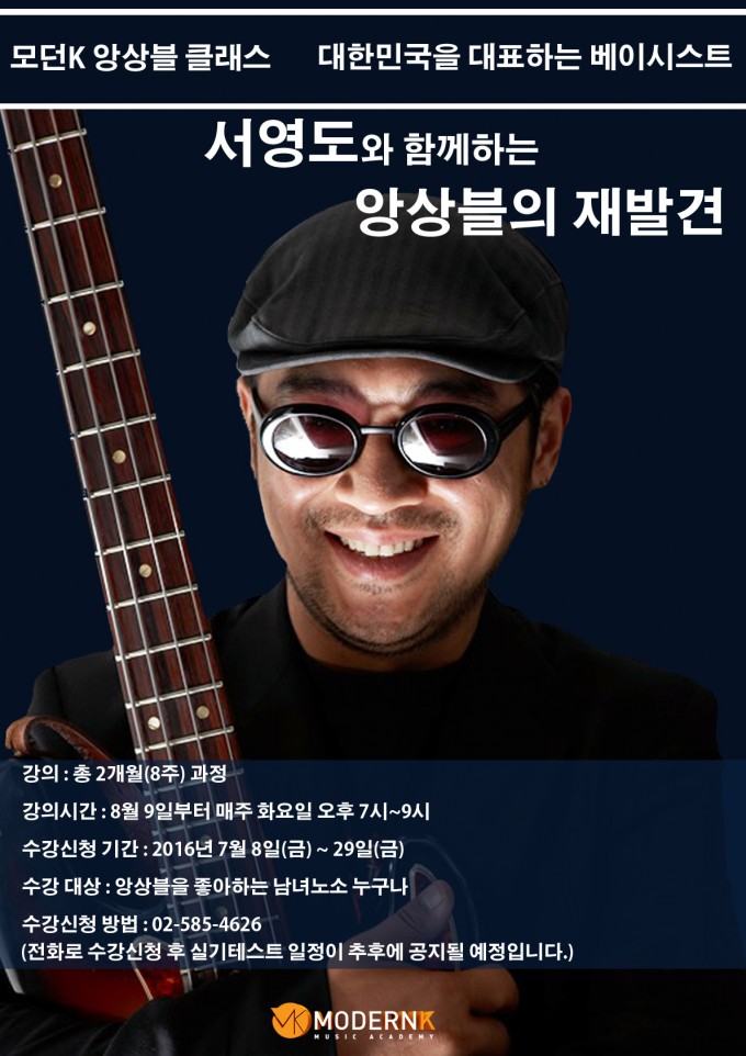 대한민국 최고의 베이시스트 서영도. 모던K의 새로운 앙상블을 맡아 8월부터 진행해주실 예정입니다.