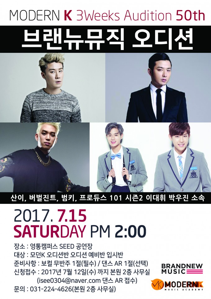 모던K 3Weeks Audition 50th 브랜뉴뮤직 오디션 산이 버벌진트 범키 프로듀스 101 시즌2 이대휘 박우진 소속