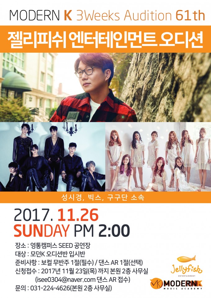 모던K 3Weeks Audition 61th 젤리피쉬 엔터테인먼트 오디션 성시경 빅스 구구단 등 소속