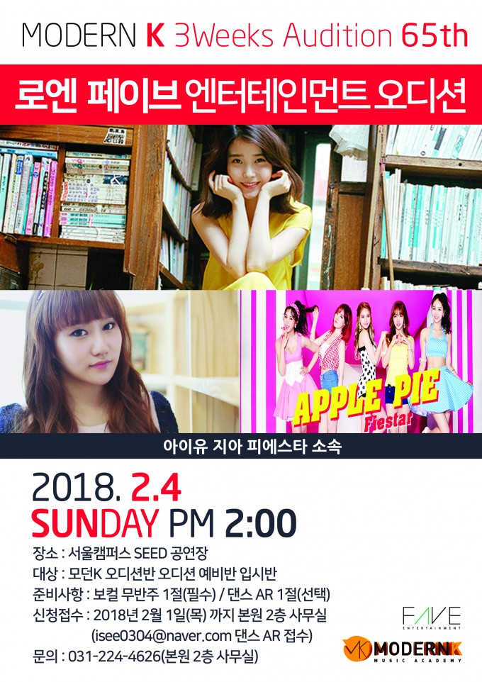 모던K 3Weeks Audition 65th 로엔 페이브 엔터테인먼트 오디션 아이유 지아 피에스타 소속