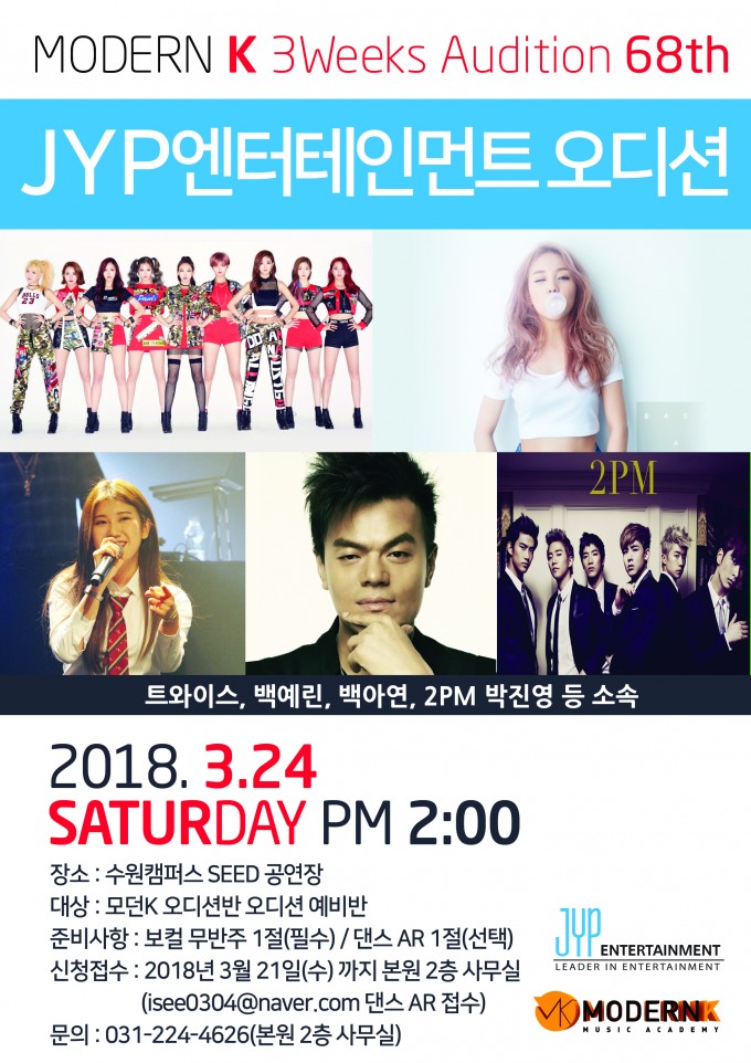 모던K 3Weeks Audition 68th JYP 엔터테인먼트 오디션 트와이스 백예린 백아연 2PM 박진영 등 소속