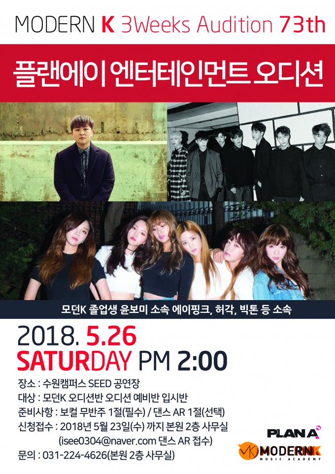 모던K 3Weeks Audition 73th 플랜에이 엔터테인먼트 오디션 모던K 졸업생 윤보미 소속 에이핑크 허각 빅톤 등 소속