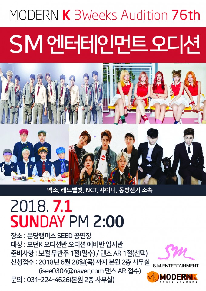 모던K 3Weeks Audition 76th SM 엔터테인먼트 오디션 엑소, 레드벨벳, NCT, 샤이니, 동방신기 소속