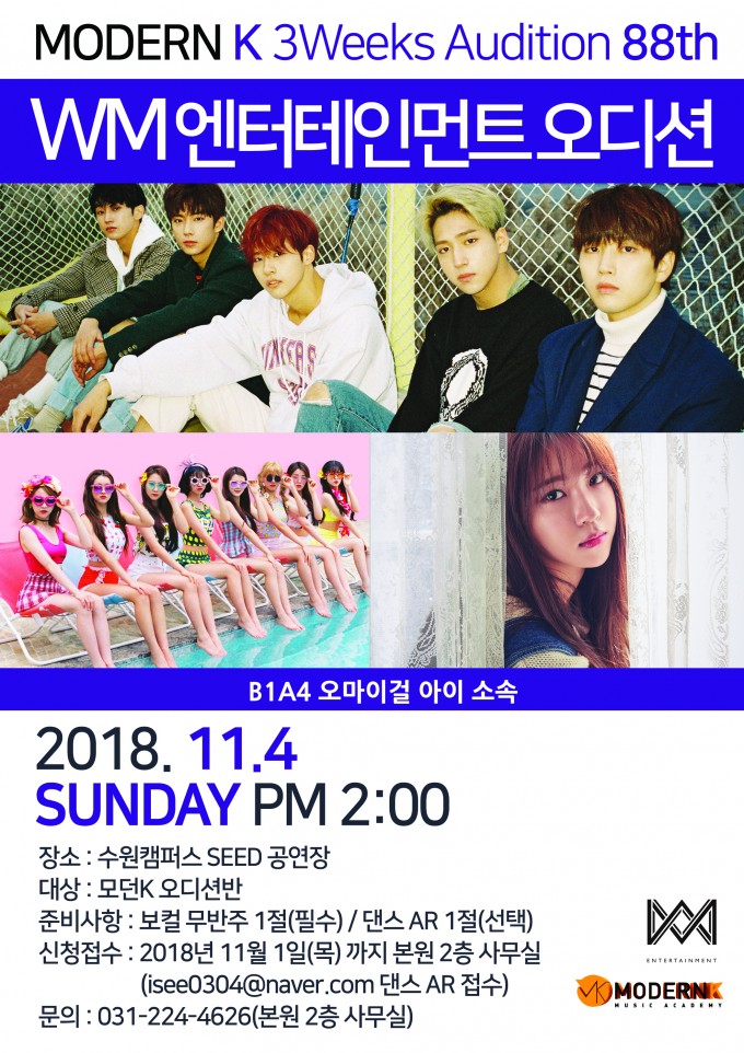 모던K 3Weeks Audition 88th WM 엔터테인먼트 오디션 B1A4 오마이걸 아이 소속