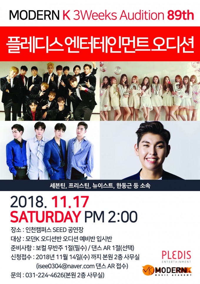 모던K 3Weeks Audition 89th 플레디스 엔터테인먼트 오디션 세븐틴 프리스틴 뉴이스트 한동근 등 소속