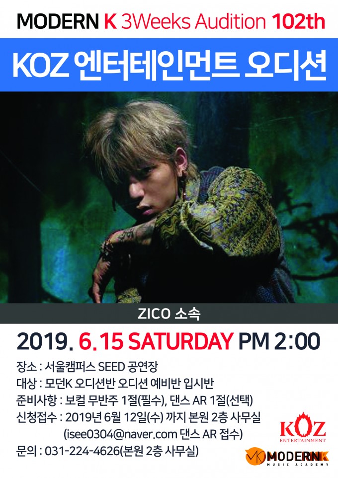 모던K 3Weeks Audition 101th KOZ 엔터테인먼트 오디션 일시 : 2019년 6월 15일(토) 2시