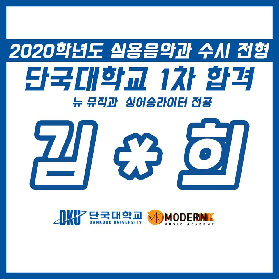 2020학년도 단국대학교 뉴 뮤직과 1차 합격자 명단입니다.