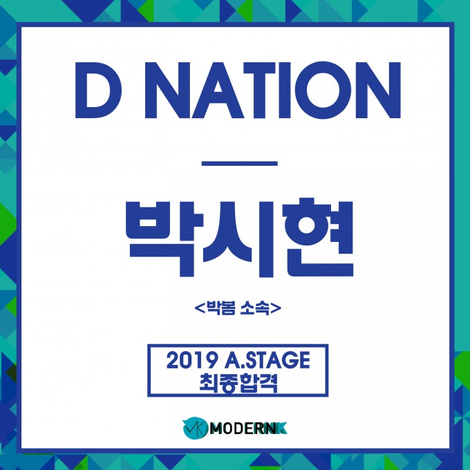 모던K 오디션반 박시현 학생이 오디션반 최고의 축제 캐스팅 연합 오디션 2019 A.STAGE 를 통해 2NE1 출신 가수 박봄이 소속된 D NATION 엔터테인먼트에 최종합격하였습니다. 앞으로 멋진 아티스트로 성장하길 모던K가 기원합니다. ^^