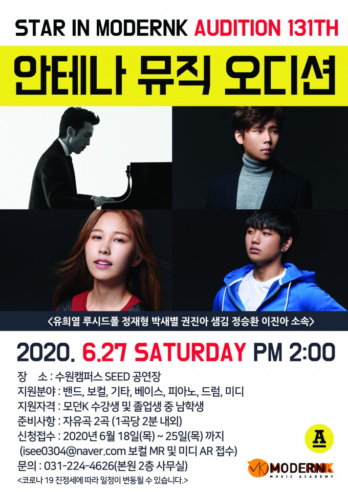 지원자격 : 모던K 수강생 및 졸업생 중 남학생 (미디는 여학생도 가능)