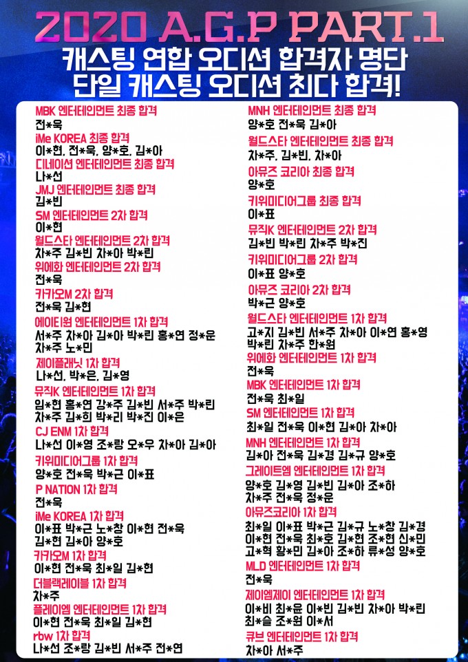 2020 A.G.P Part.1 캐스팅 전체 합격자 명단 (2020년 8월 10일 기준)