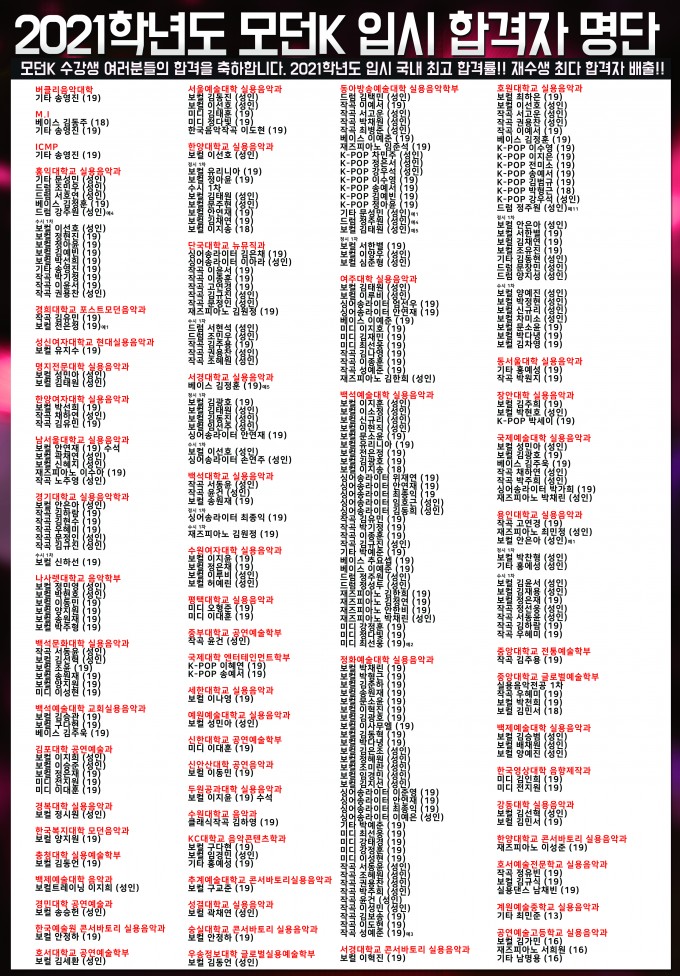 2021학년도 모던K 입시 합격자 명단 (2021년 3월 2일 기준)