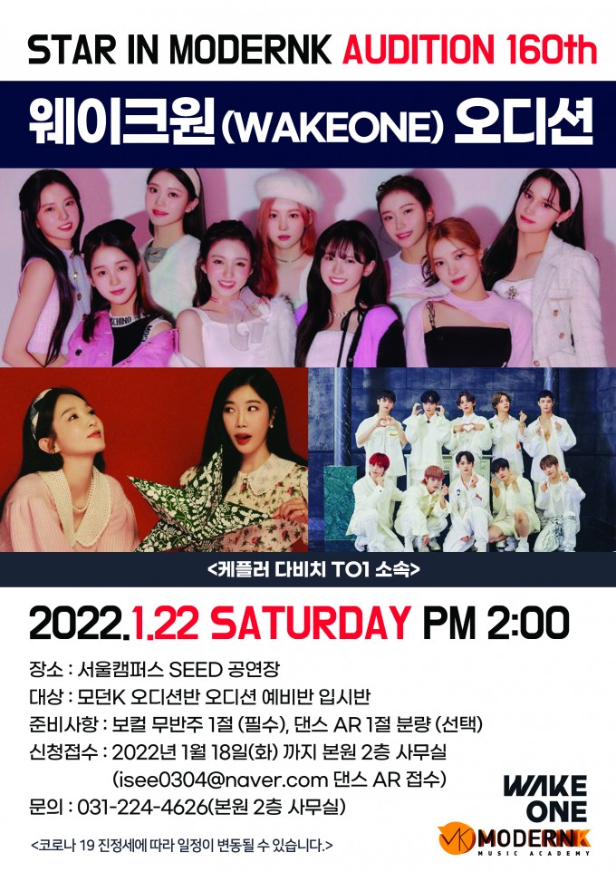 대상 : 모던K 오디션반 오디션 예비반 입시반