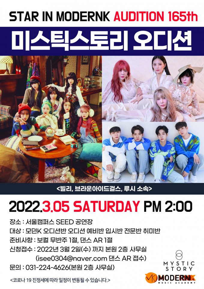 대상 : 모던K 오디션반 오디션 예비반 입시반 전문반 취미반