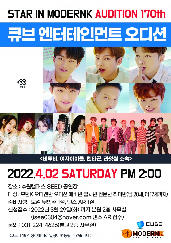 대상 : 모던K 오디션반 오디션 예비반 입시반 전문반 취미반