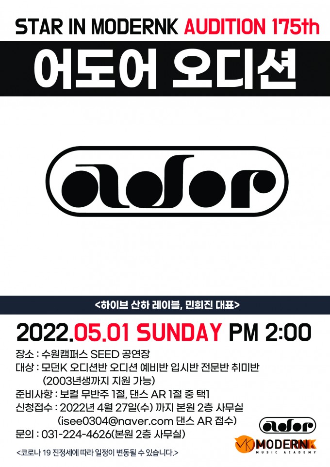 대상 : 모던K 오디션반 오디션 예비반 입시반 전문반 취미반