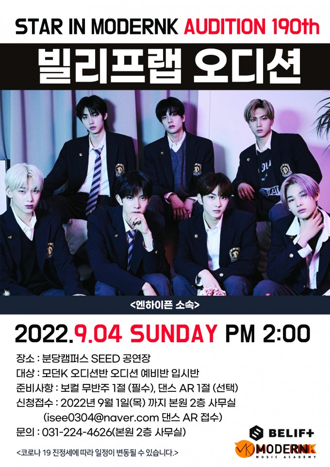 대상 : 모던K 오디션반 오디션 예비반 입시반