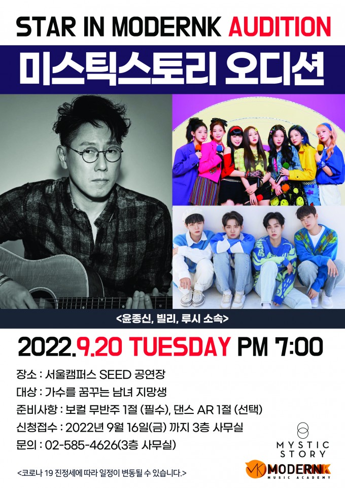 #미스틱엔터테인먼트오디션 #미스틱스토리오디션 #미스틱스토리 #빌리 #윤종신 #루시 #모던K실용음악학원 #모던K오디션 #모던K오디션반 #가수오디션 #기획사오디션 #아이돌오디션