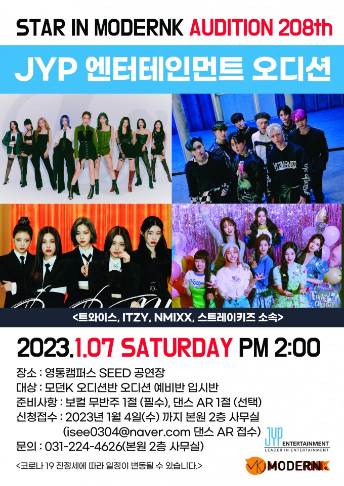 대상 : 모던K 오디션반 오디션 예비반 입시반