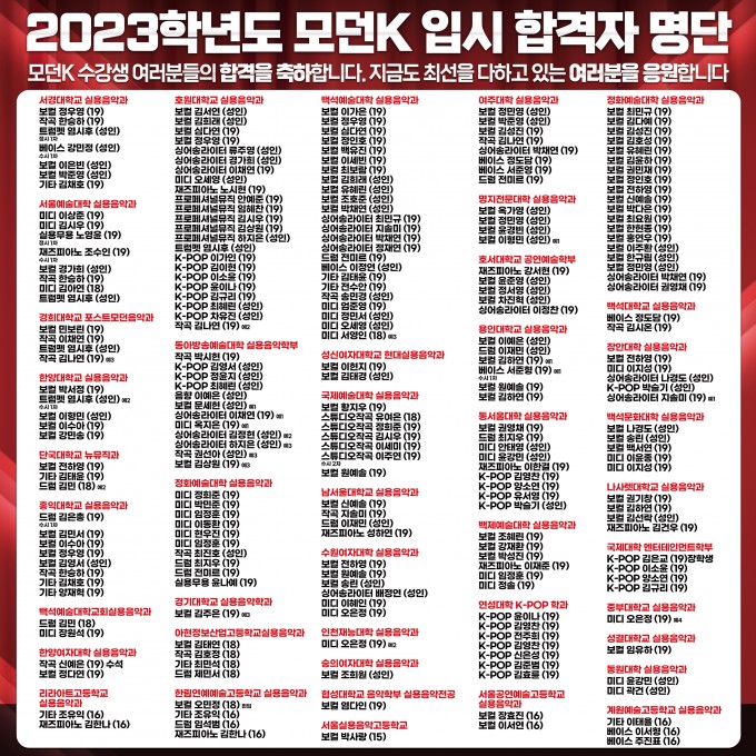 2023학년도 모던K 입시 합격자 명단