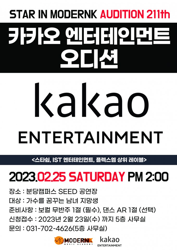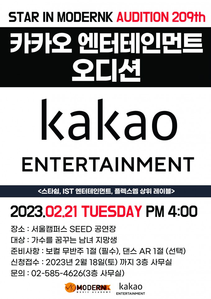 대상 : 가수를 꿈꾸는 남녀 지망생