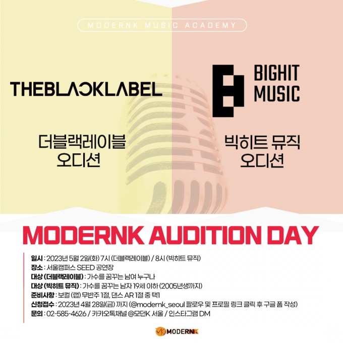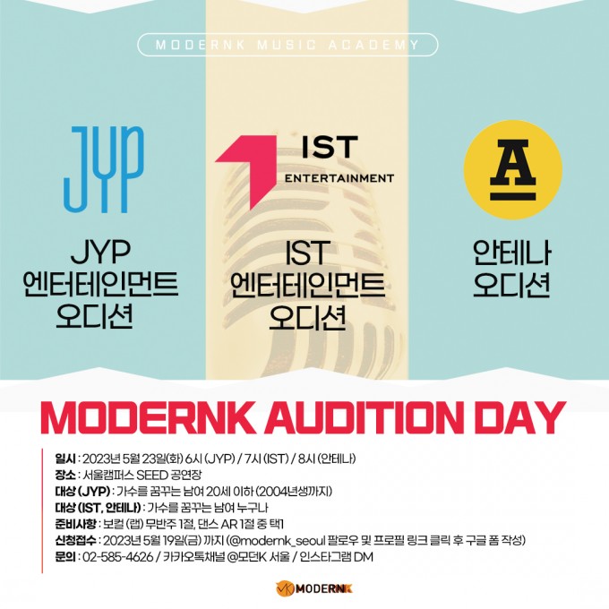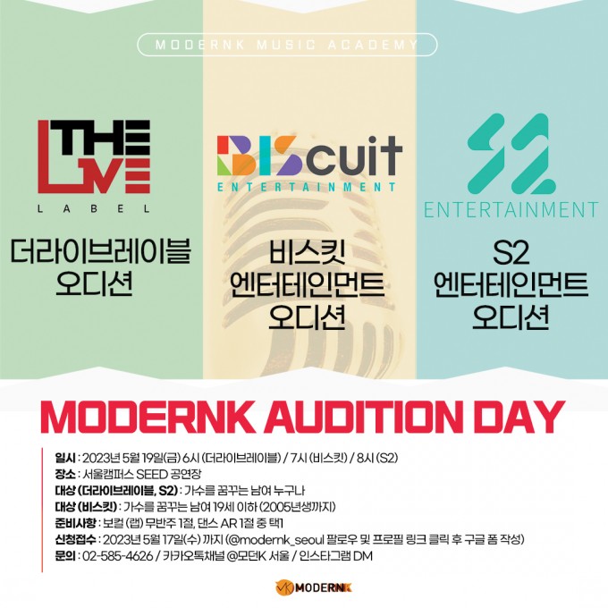 모던K 실용음악학원 5월 오디션 일정 [STAR IN MODERNK]