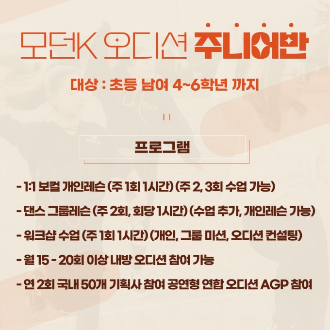 . 모던K에서 드디어 오디션 주니어반 개설! 첫 발을 내딛는 순간 최고의 기회가 펼쳐집니다!