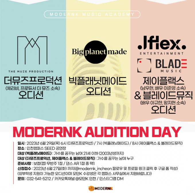 모던K 실용음악학원 6월 오디션 일정 [STAR IN MODERNK]