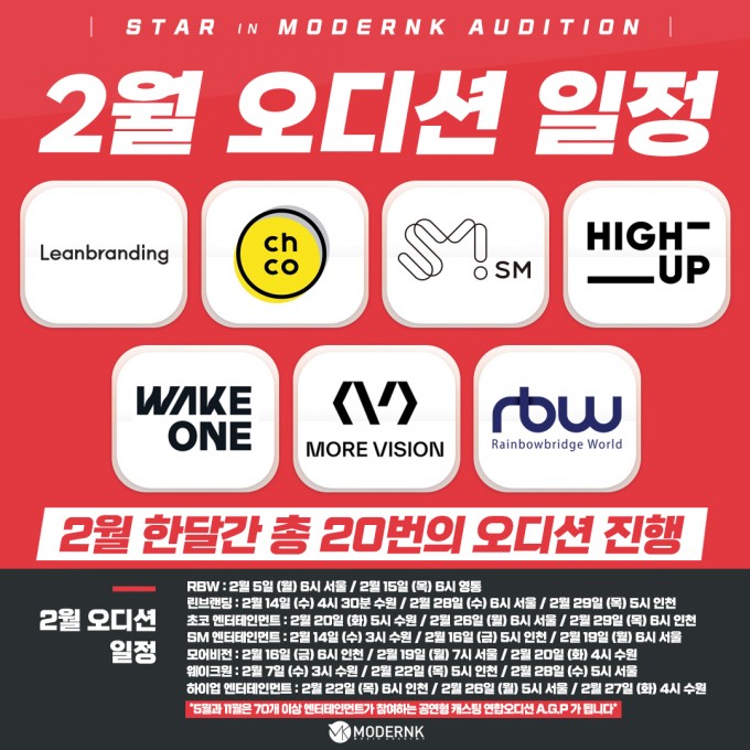 SM, RBW, 모어비전, 하이업, 웨이크원 등 2월 한달간 총 20번의 오디션 진행!