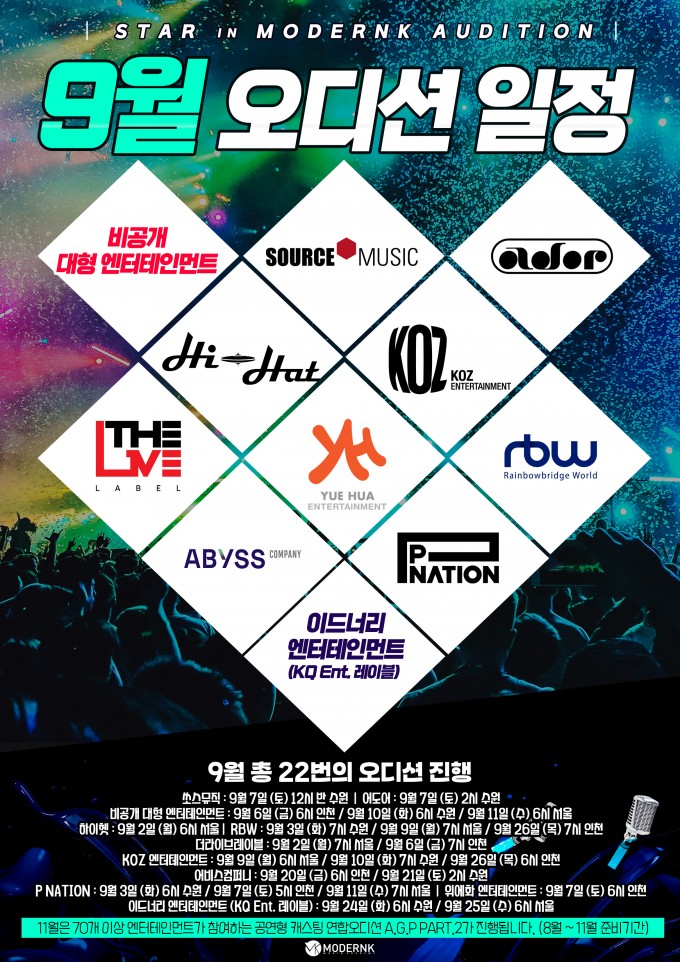 어도어, 쏘스뮤직, KOZ, P NATION, 어비스컴퍼니, 위에화 등 9월 한달간 총 22번의 오디션 진행!
