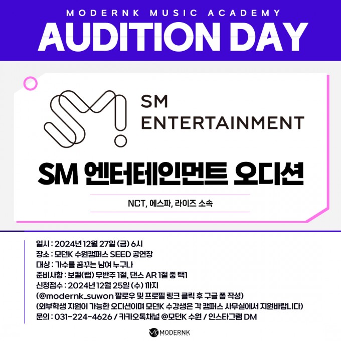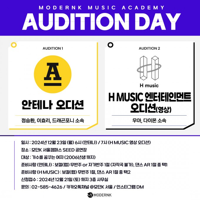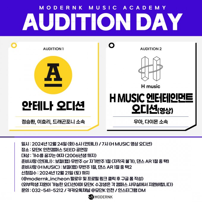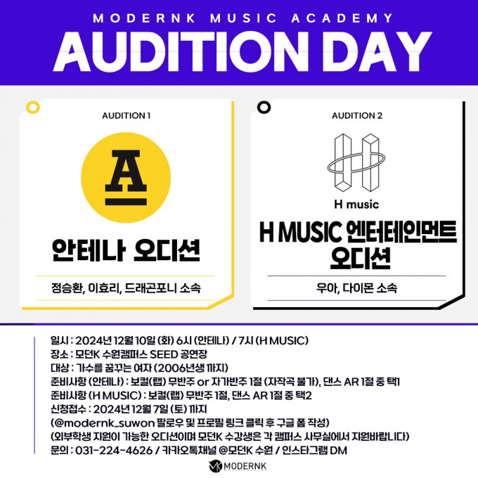 모던K 실용음악학원 2024년 12월 오디션 소식 입니다.