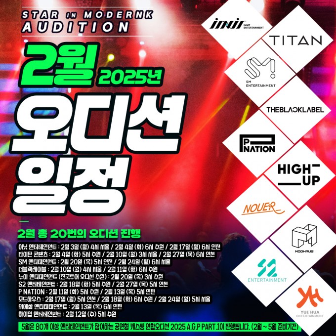 SM, 더블랙레이블, S2, 타이탄콘텐츠, 하이업 등 2월 한달간 총 20번의 오디션 진행!