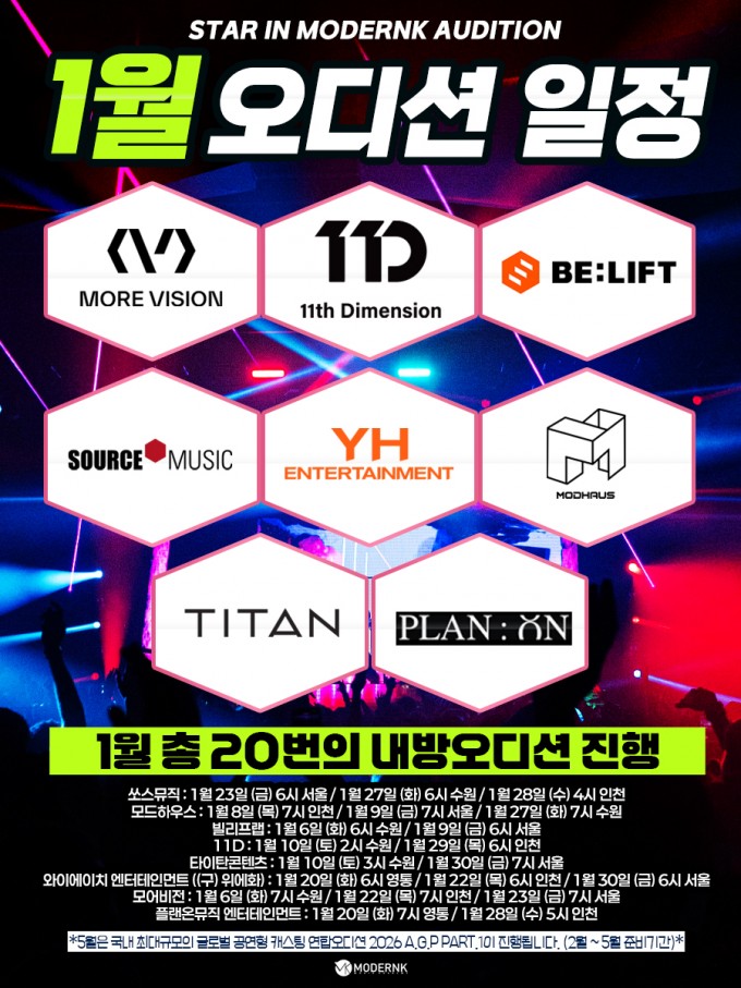 모던K 실용음악학원 2026년 1월 오디션 일정 [STAR IN MODERNK]