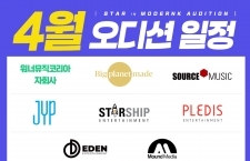 모던K 실용음악학원 2024년 4월 오디션 소식 입니다. JYP, 스타쉽, 플레디스, 쏘스뮤직, 빅플래닛메이드 등 4월 한달간 총 22번의 오디션 진행! 매달 15 ~ 20회 내방 오디션과 국내 70개 이..