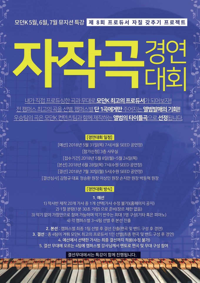 김형규 대표님과 함께하는 쉽게하는 작곡특강에 이어 5월부터 7월까지 자작곡경연대회가 진행됩니다!