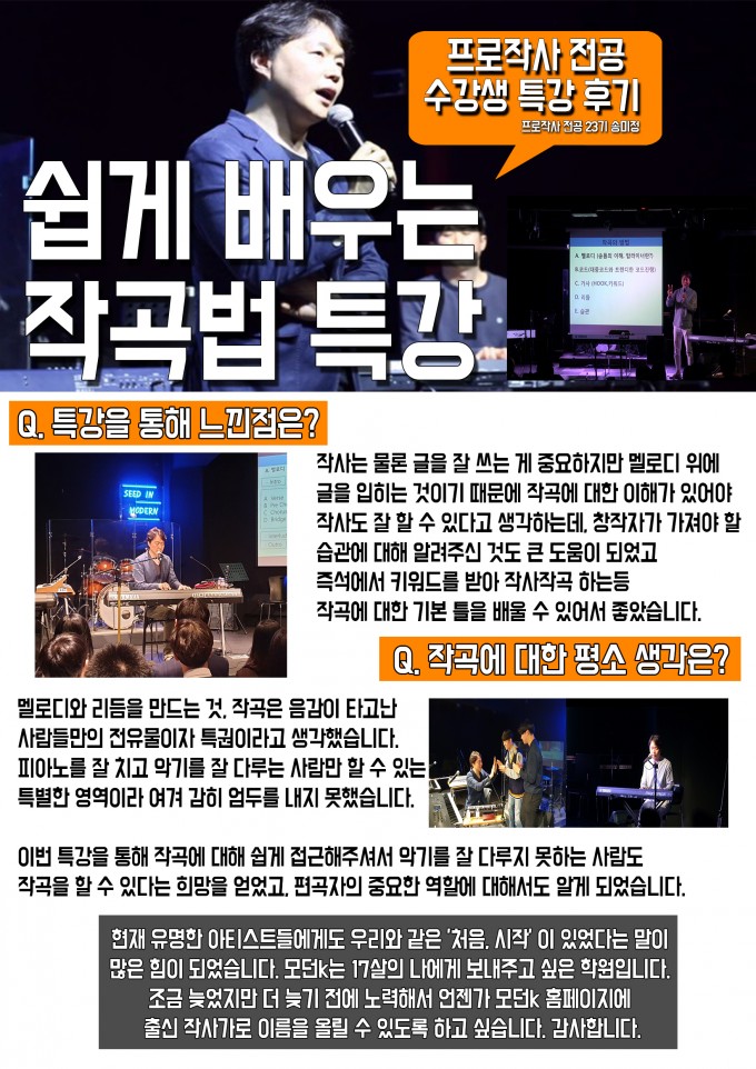 4월 이달의 특강으로 진행된 [쉽게 배우는 작곡법 특강] 후기 (프로작사 전공 23기 송미정)