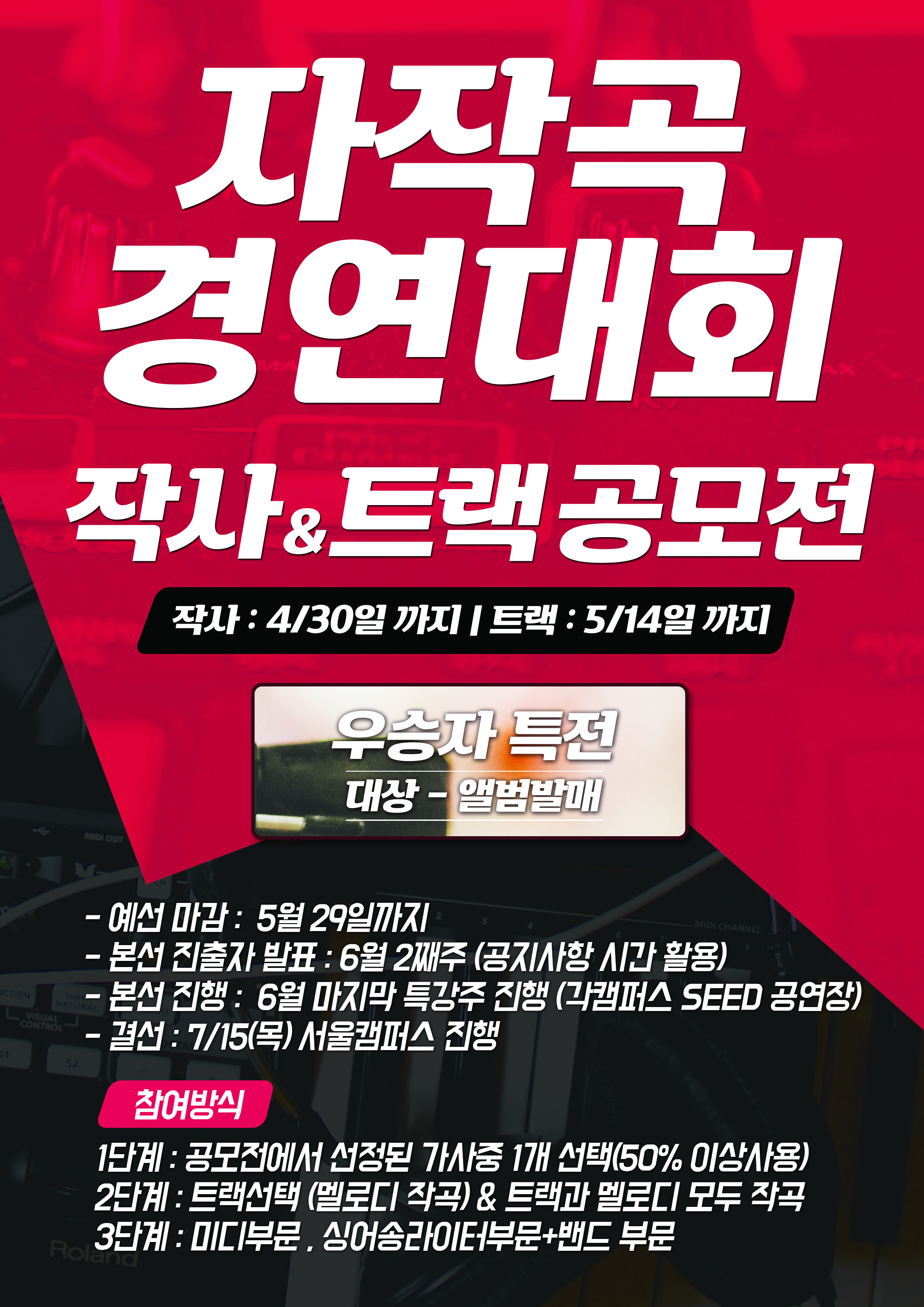 - 전 캠퍼스 최고의 곡을 선별, 전 캠퍼스 중 단 1곡에게만 주어지는 앨범 발매의 기회!!
