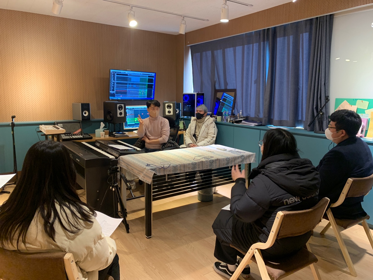 녹음실 현장에서 직접 두 시간 안에 다같이 작곡을 하고,그 곡의 가사도 수강생들이 직접 쓰면서,