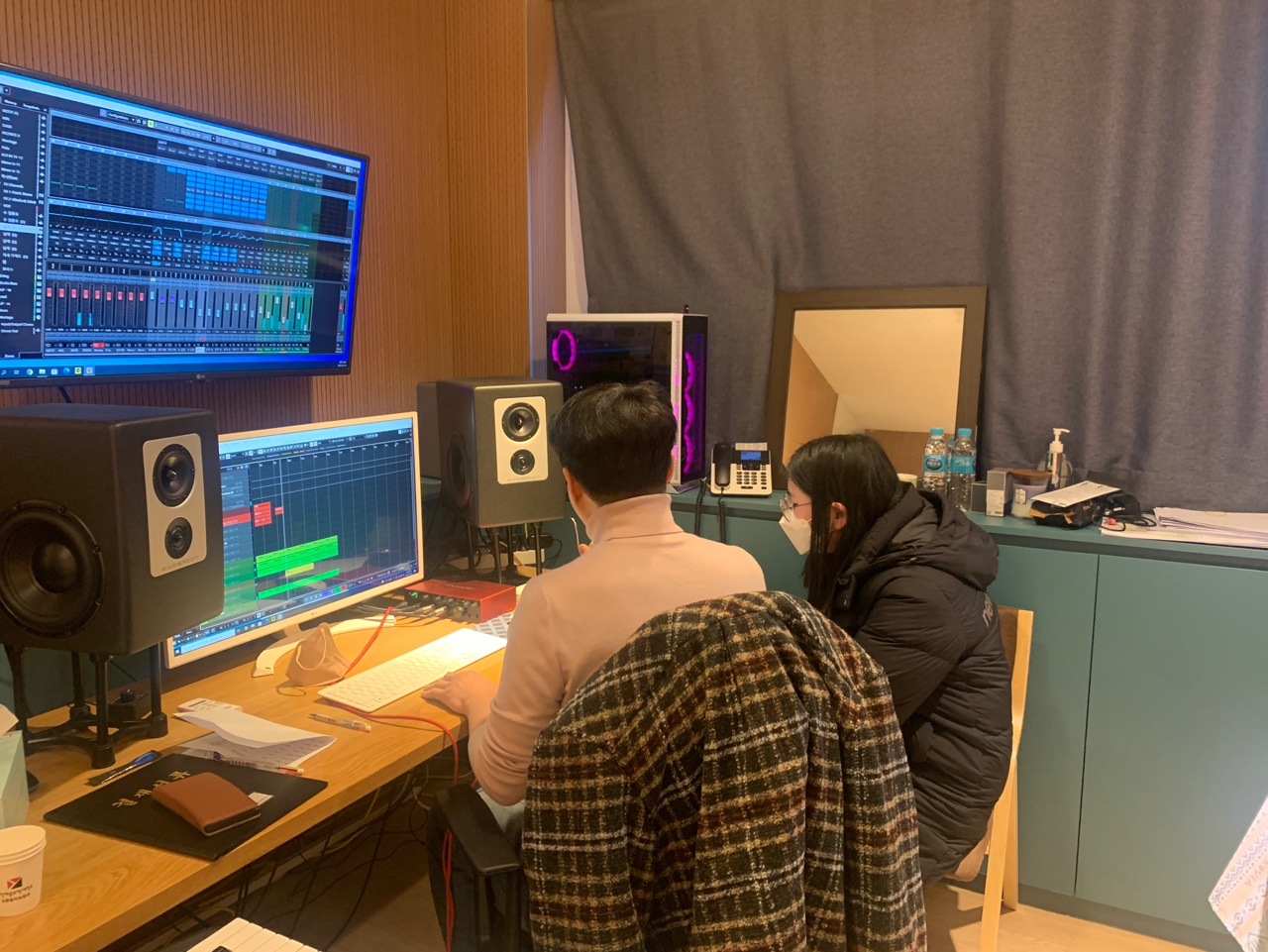 각자의 가사노트를 건내들고 녹음 부스에 들어가