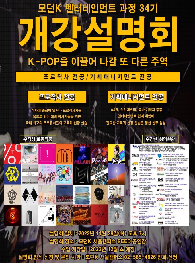 모던K 엔터테인먼트 과정 34기 개강설명회를 개최합니다 (프로작사반, 기획매니지먼트반)