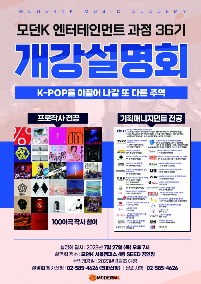 모던K 서울캠퍼스 02-585-4626으로 전화 신청 및 문의바랍니다.