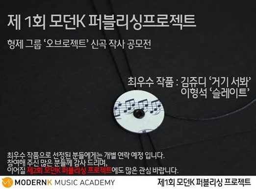 음악하는 형제 '오브로젝트' 신곡 작사 공모전의 결과 발표가 홈페이지를 통해 공개 되었습니다.