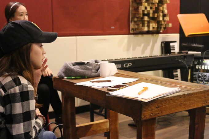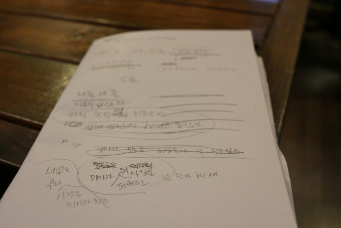 작곡가들이 곡을 쓰는 과정을 배우면서 현장에서 즉흥적으로 만들어진 멜로디에 현장에서 바로 가사를 붙여봤는데요. 이렇게 만들어진 가사를 모던K 김우주 강사님께서 직접 녹음까지 해보았던 녹음 수업!