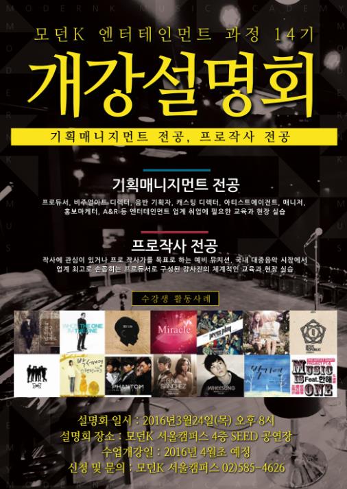 모던K 엔터테인먼트 14기 개강설명회가 3월 24일(목) 오후 8시 부터