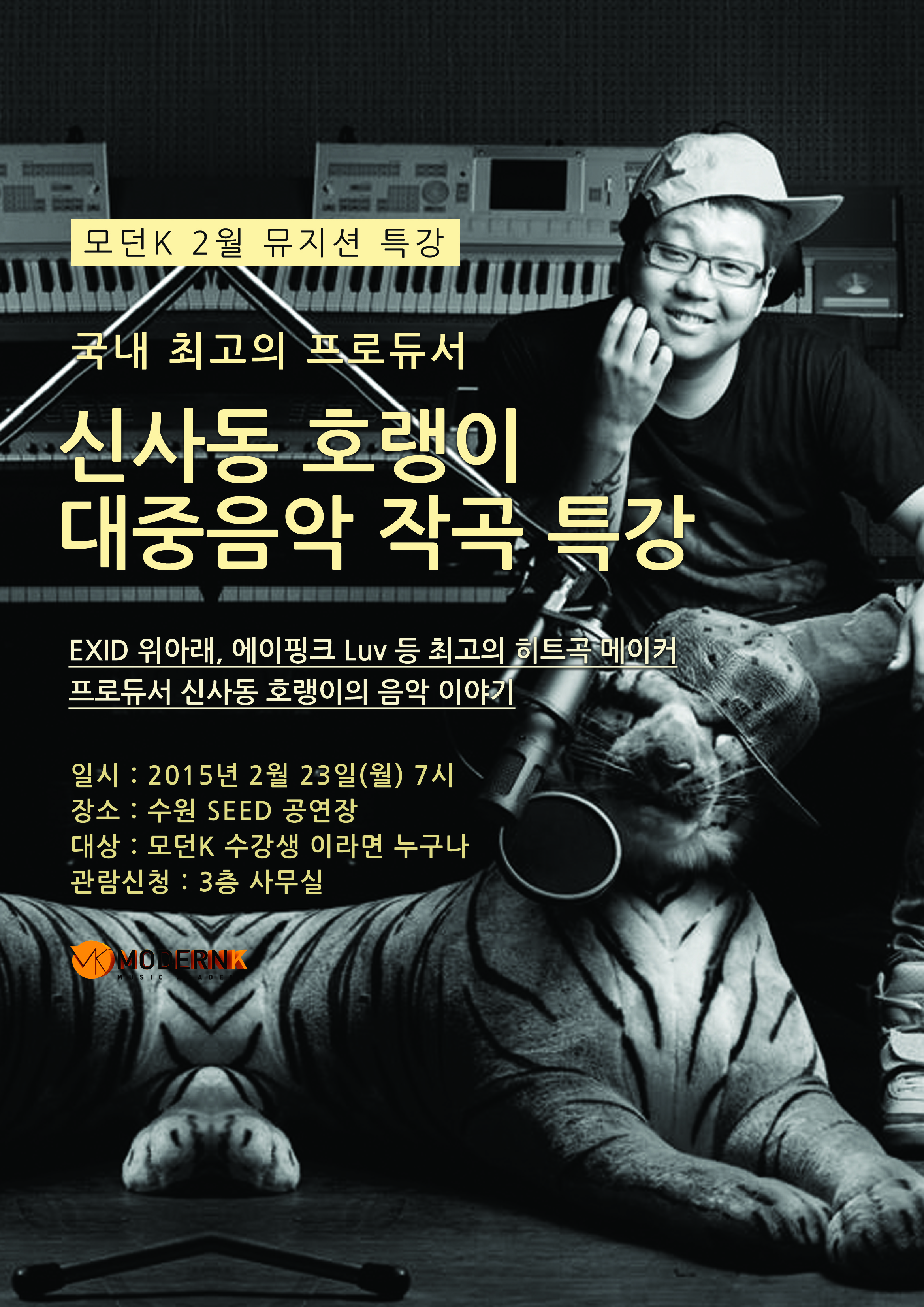 2월 23일(월) 오후 7시 수원 seed 공연장에서 신사동 호랭이 작곡가님 특강이 진행 됩니다.