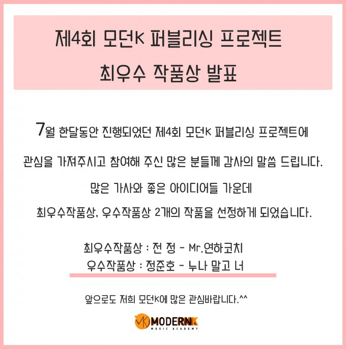제4회 모던K 퍼블리싱 프로젝트 최우수 작품상 발표